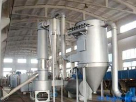 流化床干燥機是由物料自進料進口進入機內(nèi),在振動力作用下,物料沿水平面流化床拋擲,向前連續(xù)運動,熱風(fēng)向上穿過流化床同濕物料換熱后,濕空氣經(jīng)旋風(fēng)